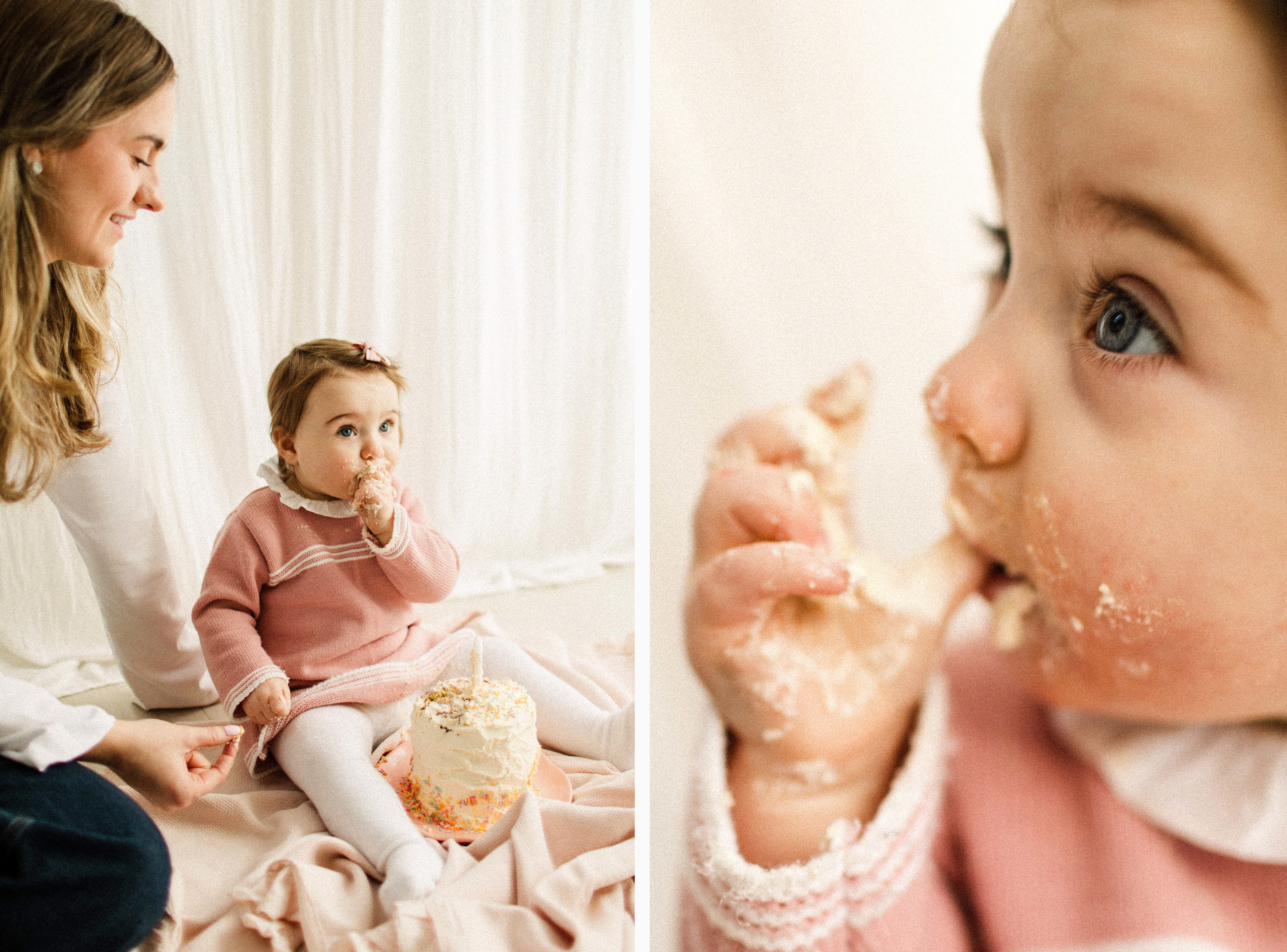 Are you fan of all things authentic, simple and timeless? If yes, I offer completely natural cake smash photo sessions. Nothing themed, no props, just your baby, you and maybe the cake. My cake smash sessions have 3 different parts; family photos, portraits of your baby and the actual cake smash. This will give you a beautiful selection of images to choose from. You can bring 2 different outfits for your baby, one for the family photos and one for the cake smash. If you are not a fan of cake smash, but would like to add something to your little ones first birthday photos, you can just bring a nice cup cake. There is loads we can capture while your baby will be exploring, tasting and eating the cupcake. Cute, original and still beautiful moments turned into memories.